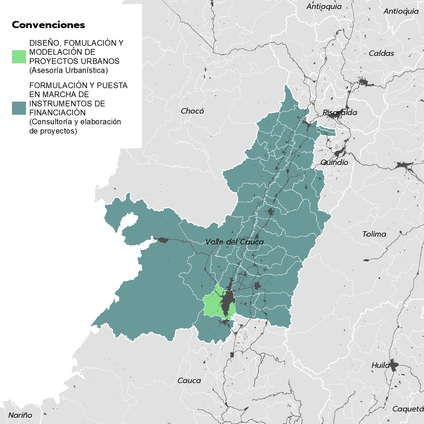 Igualmente nos ocupamos del diseño técnico y normativo, la modelación urbanística y el diseño de mecanismos de gestión y financiación de proyectos urbanos y operaciones estratégicas y/o integrales.