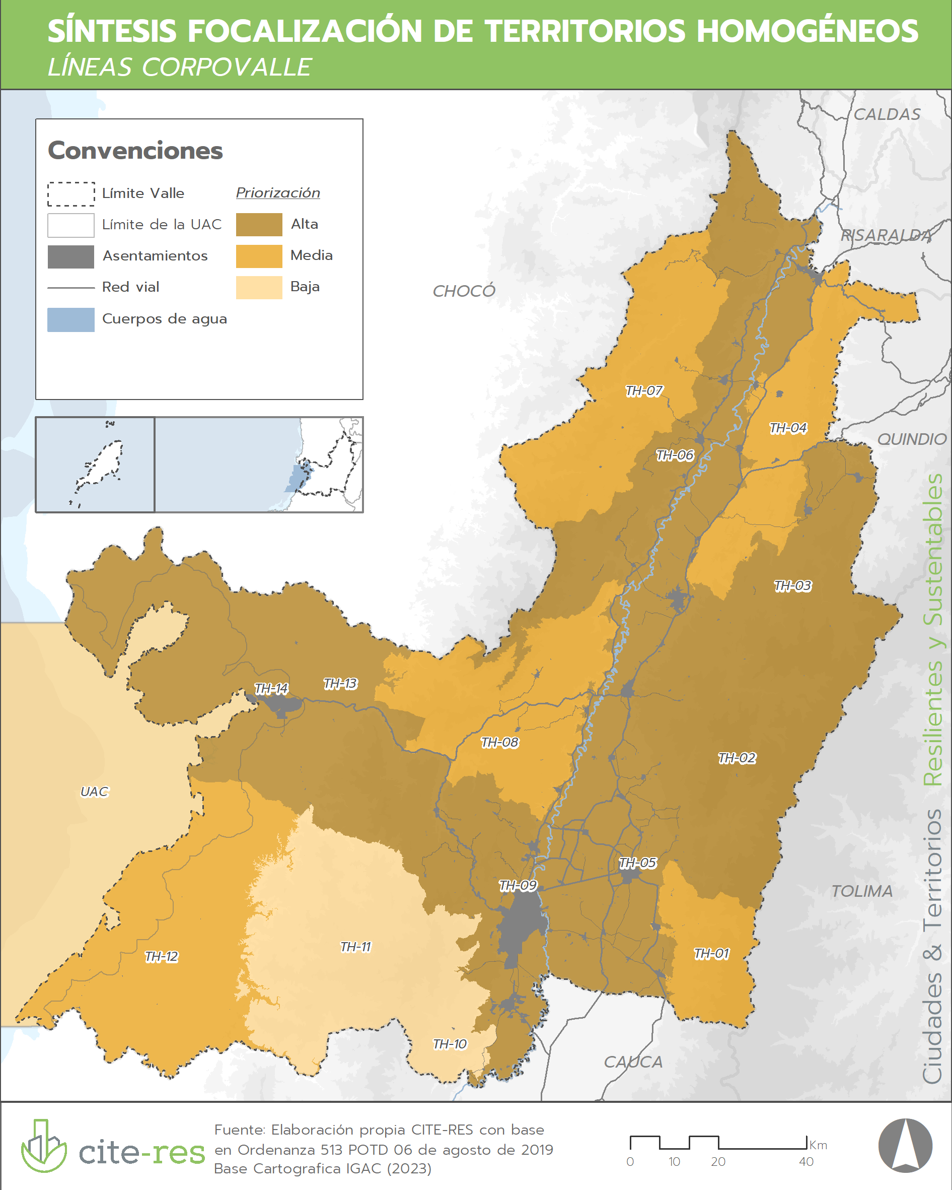 En aras de lograr que los candidatos a la Gobernación y a las Alcaldías de los municipios del Valle para la vigencia 2024-2027 contribuyan a implementar el Modelo propuesto en el Plan de Ordenamiento Departamental, CORPOVALLE formuló unas líneas preliminares de acción para el Valle del Cauca, en cuyo marco CITE-RES contribuyó a que éstas se enmarquen y se prioricen en función de las apuestas territoriales proyectadas a largo plazo en el Plan de Ordenamiento Departamental y que se armonicen con instrumentos de enmarcación regional (Plan Estratégico Regional del Pacífico) y nacional (Plan Nacional de Desarrollo). Con dicho trabajo se logró identificar los territorios donde se debían focalizar las políticas públicas de la gobernación y de los Alcaldes durante su período de Gobierno (2024-2027) y la articulación que debía promoverse entre éstas para maximizar los impactos positivos.